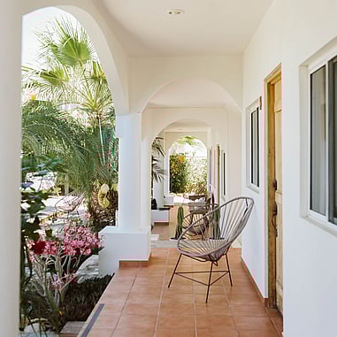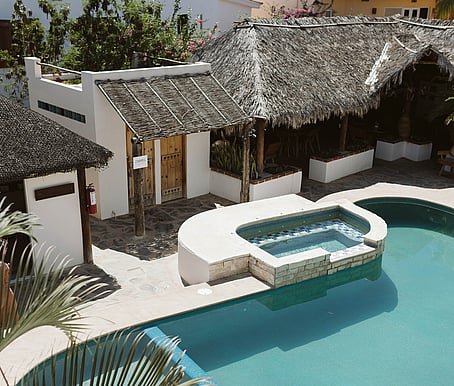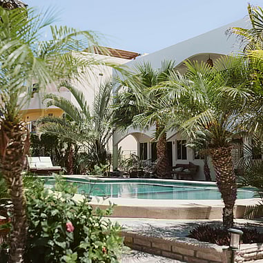 Olas de Cerritos is a boutique hotel with warm service, a stunning pool and gardens, just a two-minute walk from Cerritos Beach where you can find perfect waves all year.